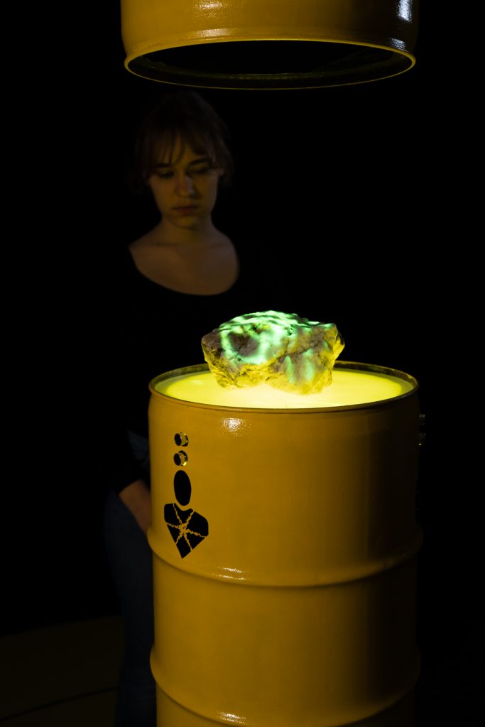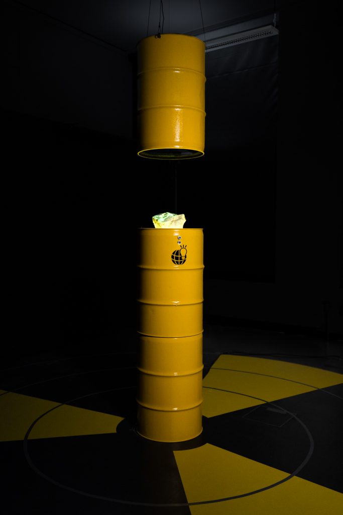 Radioaktivität ist eines der großen Themen unserer Zeit. Ihre Entdeckung brachte der Menschheit großen Fortschritt, aber auch große Zerstörung. In der Politik werden immer wieder kontrovers die Stichwörter Atomkraft, Atommüll und Endlagersuche diskutiert. Viele Menschen fühlen sich aber mit der Komplexität des Themas überfordert. Durch die interaktive Installation „Kernfrage“ kann man der Radioaktivität buchstäblich näher kommen. Über drei Bereiche, die jeweils in drei Zonen eingeteilt sind, lassen sich unterschiedliche Aspekte zu dem Thema auditiv erkunden, während die Betrachtenden dem Ursprung der Radioaktivität immer näher kommen.